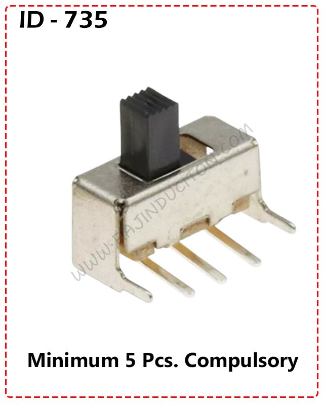 {ID - 735} - Slide Switch Right Angle 3 Pin On/Off PCB Throughole SPDT 10 Pcs. Price =